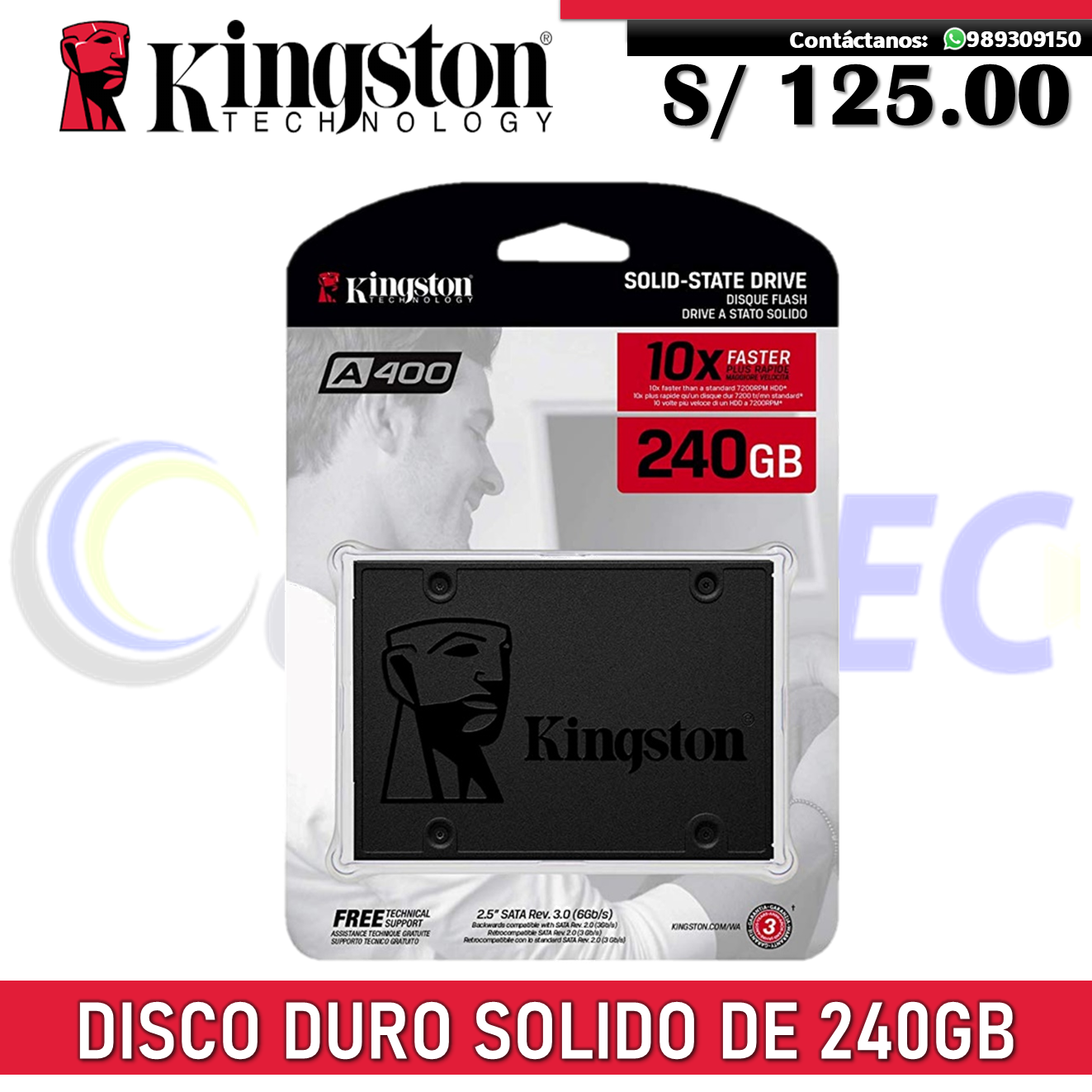 Disco Duro Solido SSD A-400 de 240GB Kingston cantidad